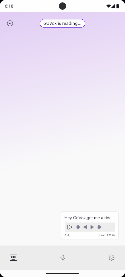 Fully voice-controlled, allowing users to book a cab without touching their phone. Ideal for driving, multitasking, or accessibility needs